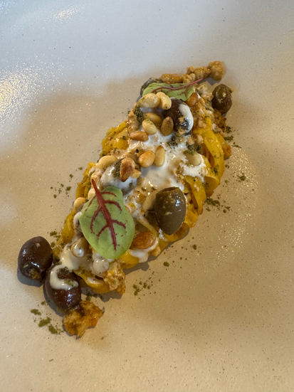 A muovere la mano della Chef è infatti una tensione gentile e sensibile verso l’essenza, un equilibrio di sapori decisi, che non stancano: «Cerco sempre l’essenza: togliere il superfluo, ma senza mai sacrificare il gusto. Uso tecniche leggere, ma parto da sapori pieni e profondi. La delicatezza non è mai debolezza, è precisione. E la sostanza non è mai pesantezza, è identità. È una ricerca continua».